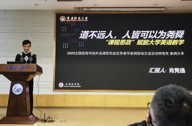 12月16日,重庆市高等教育学会大学外语教学研究专业委员会2024年会暨重庆市大学外语课程群虚拟教研室教学研讨会在重庆大学召开。我校教师肖隽逸受邀在会上作“道不远人,人皆可以为尧舜——‘课程思政’赋能大学英语教学”的课程思政优秀教学案例分享。