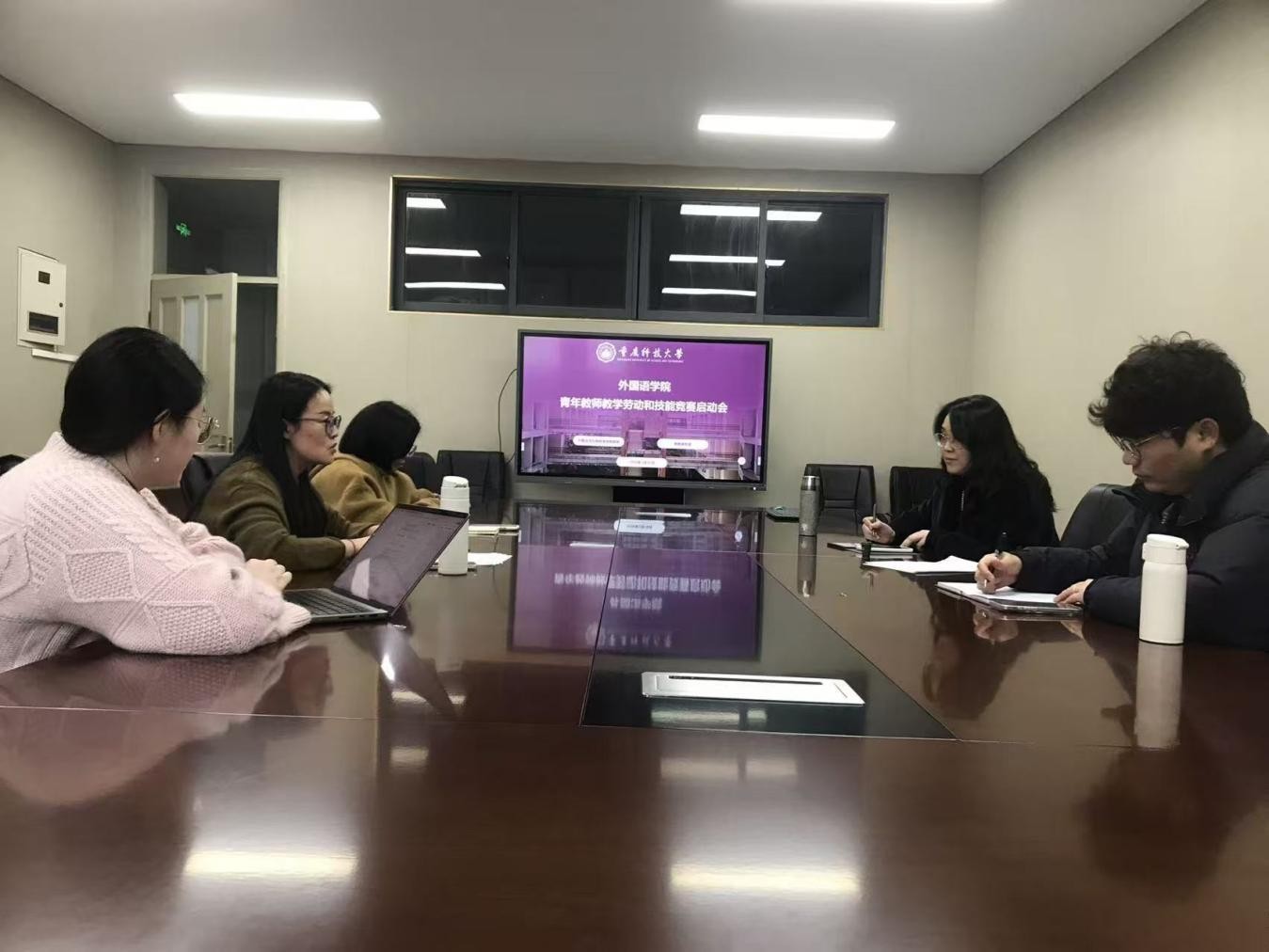 3月16日,外国语学院召开2026年青年教师教学劳动和技能竞赛启动会。本次参加青教赛的选手老师参加会议。