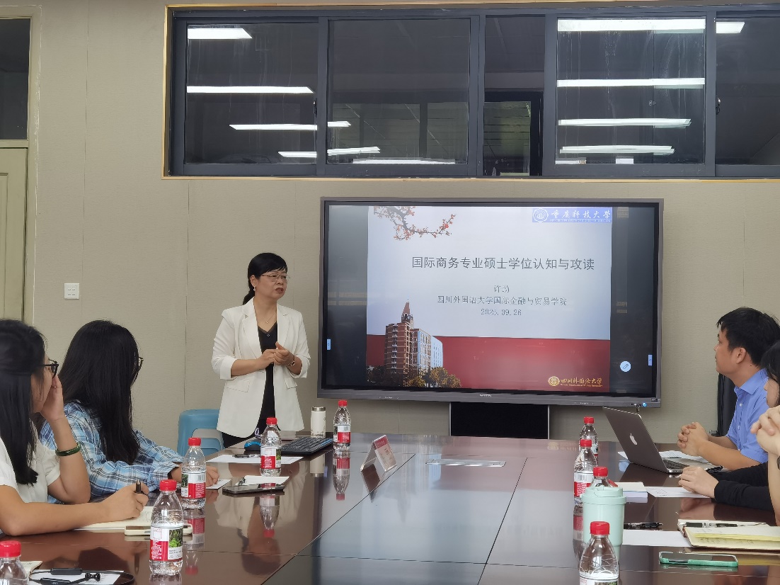 9月26日下午,四川外国语大学许劲教授受邀为师生作题为“国际商务专业硕士学位认知与攻读”的讲座,学院骨干教师、本院及经济与金融学院国际商务研究生新生参加讲座。